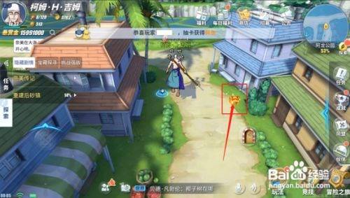 解锁【重建后沙镇】,来到后砂镇又是和适才那个村民唠嗑,需要修复,帮手去找物资。来到可可椰子村的街道上汇集4个物资,第一个在这里。如图所示