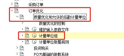 点击'物料办理',睁开子项,选择'采购' —>'订单优化' —>'质量优化和许可的后勤计量单元' —>'计量单元组' ,点击执行