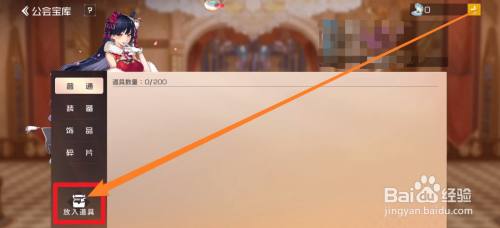 第四步:接下来在宝库中,我们点一下左下角的放入道具