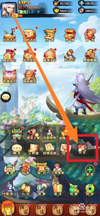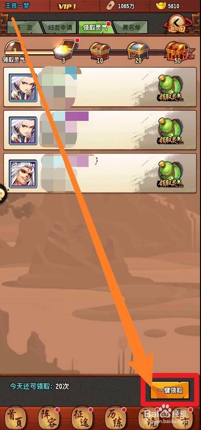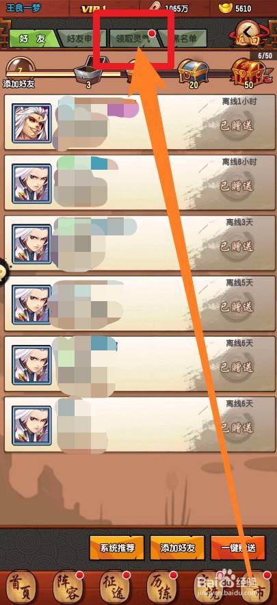 第四步:在老友中,我们点击上方的领取灵气