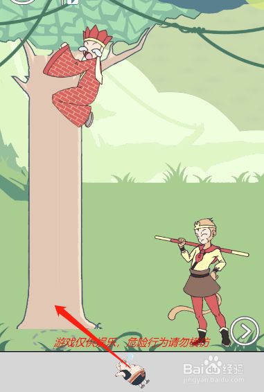 工具/原料联想小新13window10方式/步骤1这一关给出的场景是唐僧被困在树上面下不来,所以我们需要找到工具让唐僧能从树上下来12首先点击一下右下角的箭头切换到右手边的场景3然后搬走图示位置的行李4接着把熟睡的猪八戒带走5然后把熟睡的猪八戒放到树下面6最后点击一下唐僧就可以过关啦END