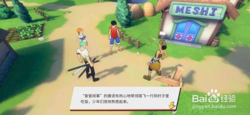 爱管闲事的说谎布热心的率领路飞一行到村子里吃饭,少年们很快熟悉起来。谈话中,说谎布知道路飞一行人是要找伙伴与大船,然后会说那是大冒险。