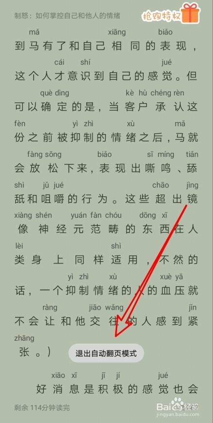 一会儿就会弹出退出主动翻页模式的提醒信息。