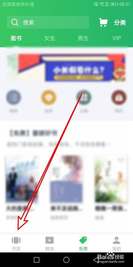 首先在手机上打开百度阅读,点击软件本家儿界面,左下角的书架选项卡。