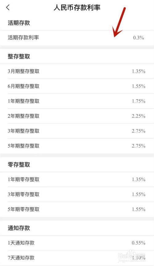 下滑界面,点击存条目利率。