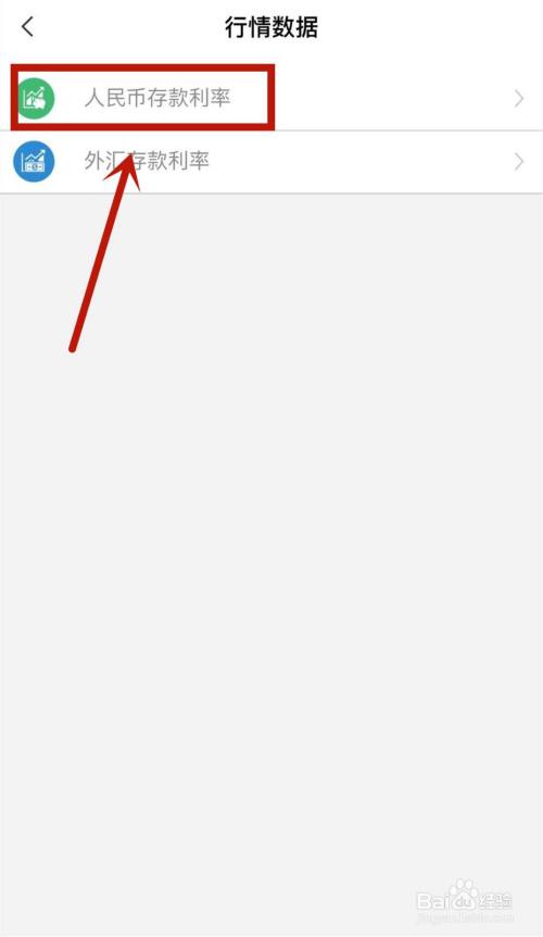 点击人民币存条目利率选项进入。
