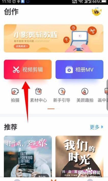 1、打开小影后,在底部点击中心的视频编纂选项。如图所示