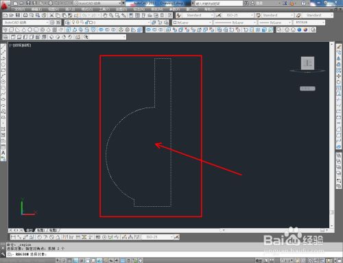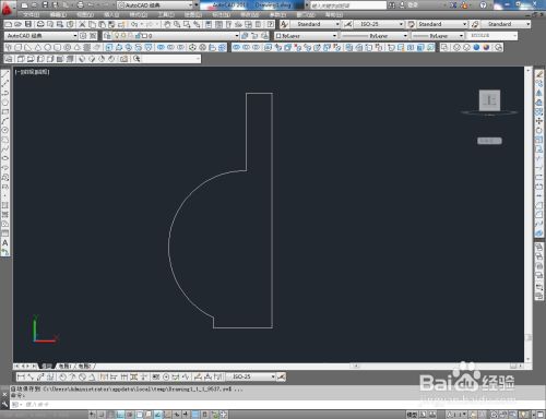 点击视图东西栏中的【前视】切换到前视图,点击【多段线东西】按图示绘制出一条多段线后,点击【圆弧东西】,用圆弧将多段线的两个端点毗连起来;