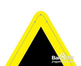 选择外部描边,钢笔东西在外部三角形上添加两个锚点,直线选择东西,点击三角形顶部的锚点。转化为光滑,标的目的下拖动到合适位置。