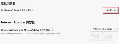 4、进入默认浏览器设置页面后,在页面右侧点击“设为默认值”按钮就可以了。