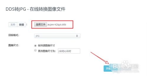 将电脑当地的dds文件上传后,我们点击方针格局jpg,然后点击【起头转换】即可