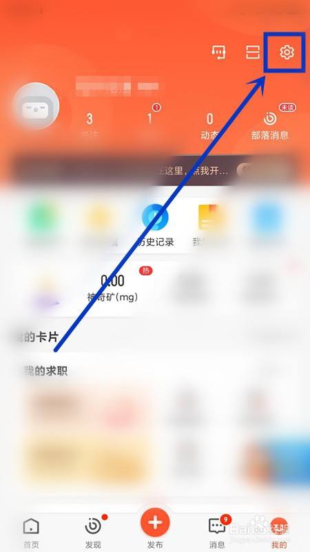 在小我中间页面,选择右上角的【齿轮】按钮点击。