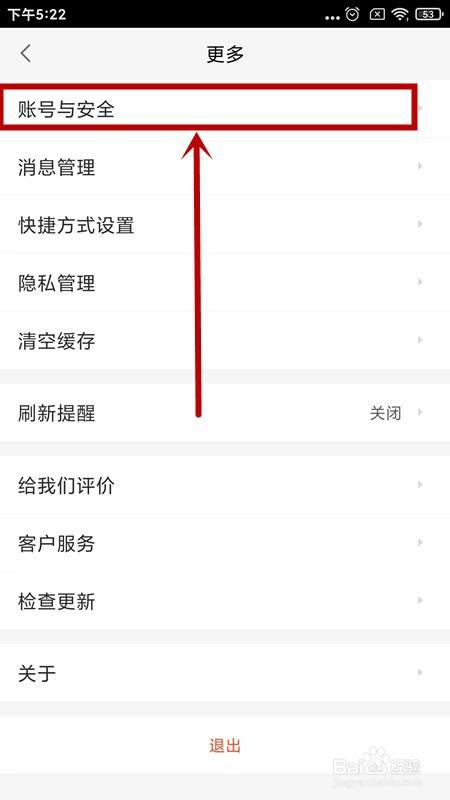 进入【更多】页面后,选择【账号与平安】选项点击。