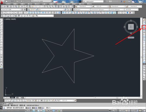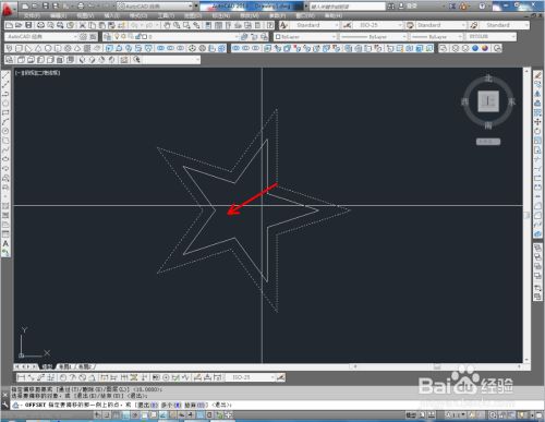 点击右边东西栏中的【偏移东西】,按图示对星形图案进行标的目的内偏移。点击【面域东西】,别离选中两五角星图案并依次按下空格键确认,生当作两五角星面域图案;