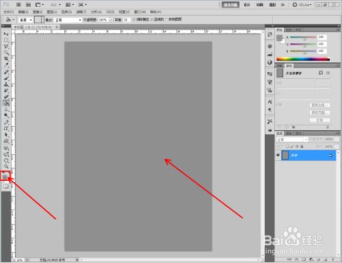 打开Adobe Photoshop CS5软件,进入软件作图区域;