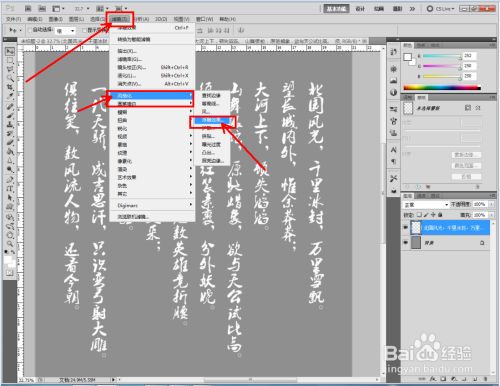 鼠标右键点击文字图层-【栅格化文字】,将文字图层转换为通俗图层(如图所示);