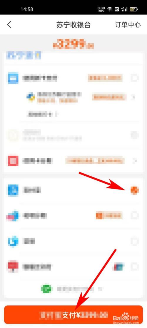 进入“苏宁收银台”界面,选择完支付体例后,点击“支付”按钮。