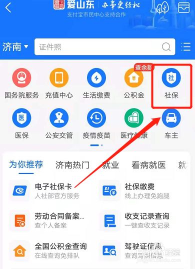 在市民中间页面点击社保。