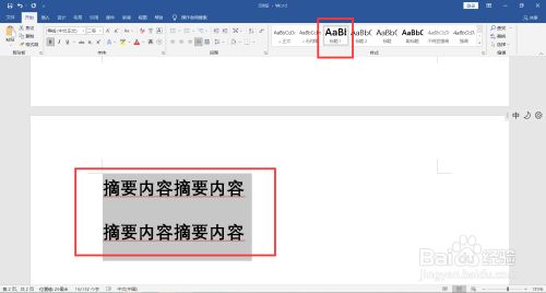 选中摘要文字,点击菜单栏上“起头-样式-题目1”。