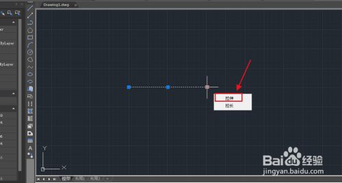 把鼠标放在直线的一个端点上,变红的时辰选择拉伸。见下图