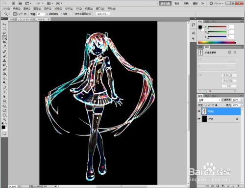 点击【图像】-【调整】-【口角】,将图案转换为口角图案后,按下键盘上的【Ctrl】+【I】进行反标的目的操作,生当作人物线条图案;