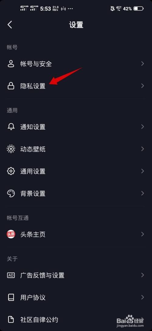 点击隐私设置的选项。