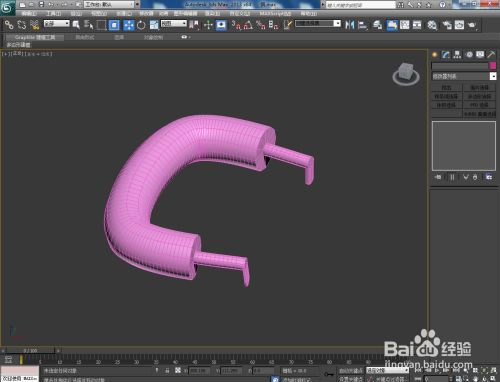 点击【多边形】图标,选中图示模子上的面并进行挤出处置后,点击【点】图标,选中图示模子上的点并进行扭转和移动,完当作汤锅把手模子的建造;
