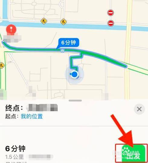 最后,进入到苹果耳机路线页面后,点击“出发”,即可按照路线找到丢掉的苹果耳机仓