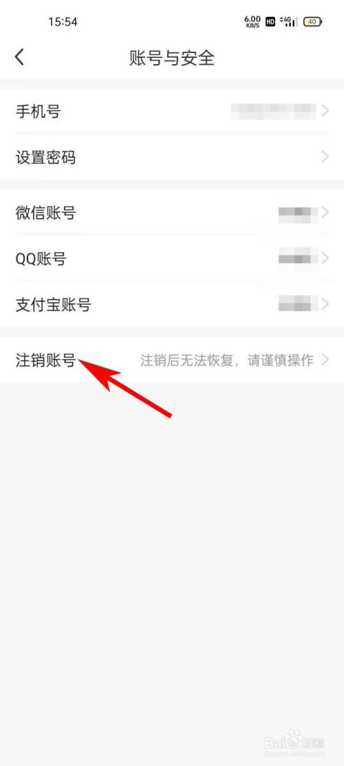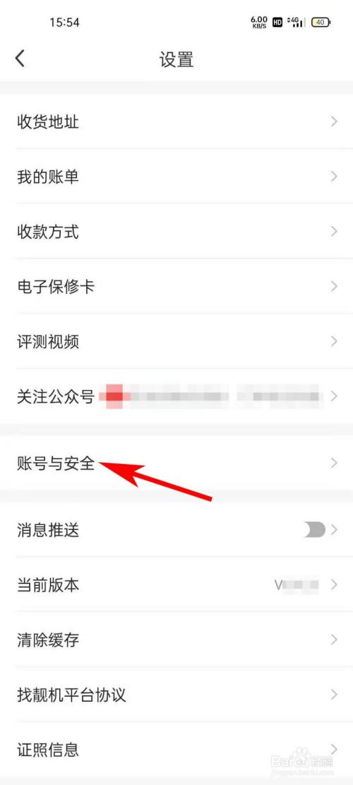 进入“账号与平安”界面,点击“刊出账号”菜单。