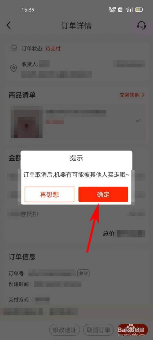 进入“订单详情”界面,点击下方“打消订单”按钮。