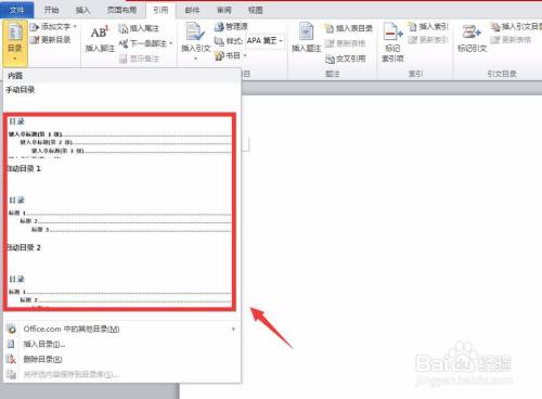 如下图所示,我们可以自行选择需要的目次模式,进行目次的添加。
