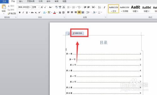 此刻我们已经当作功添加了一个word目次,若是后期对文档进行了点窜,那么我们的目次可能也需要更新,我们可以将鼠标移动到目次上,如下图,会呈现【更新目次】的文字提醒。