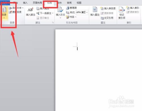 首先,我们打开需要添加目次的Word文档,将光标放在需要添加目次的位置,点击菜单栏的【引用】----【目次】。