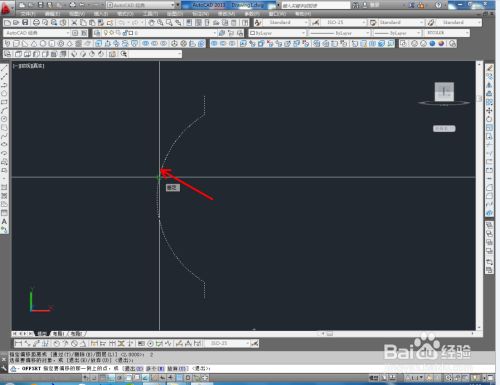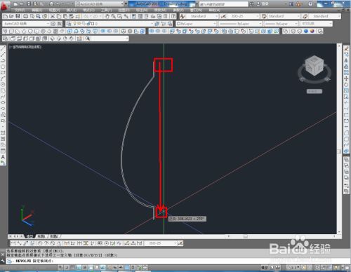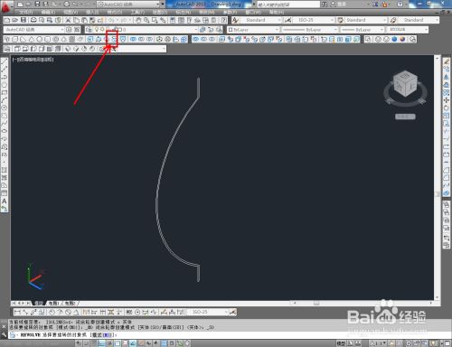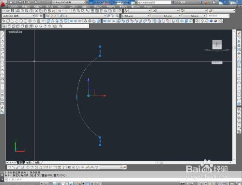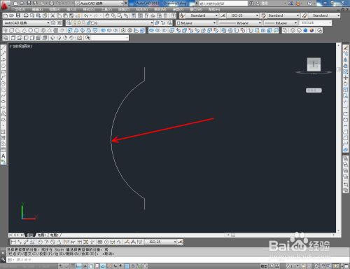 切换到前视图,点击【直线东西】绘制出图示两条直线后,点击【圆弧东西】按图示绘制出圆弧线并将直线的端点毗连起来;