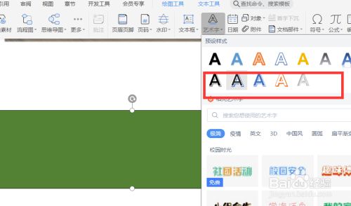 接着点击“插入”选择“艺术字”打开
