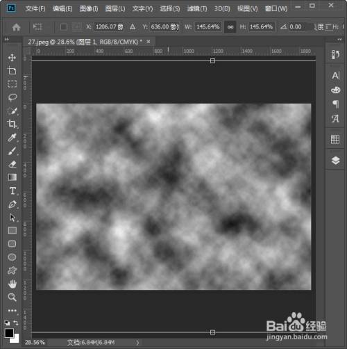我们按下【CTRL+T】调整一下云彩的大小,如图所示。