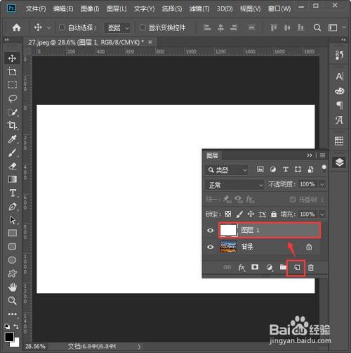 图片打开之后,我们在布景图层的上面添加一个图层,填充为白色,如图所示。