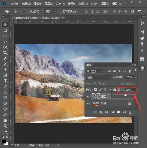接下来,我们把填充调整为【55%】,如图所示。
