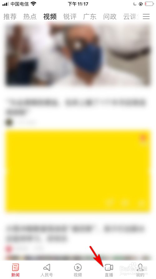 在应用首页中,点击右下方直播的选项。