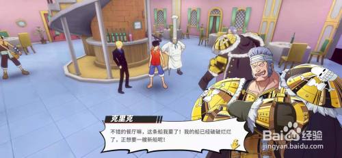 不错的餐厅嘛,这条船我要了!我的船已经破破烂烂了,正想要一艘新船呢!谁都禁绝违抗我!我是最强的!我会获得one piece,当作为帆海王。路飞会辩驳他,因为他才是将来的帆海王。