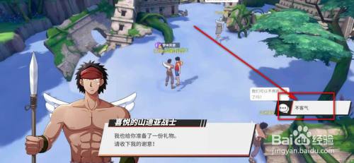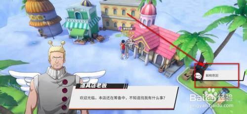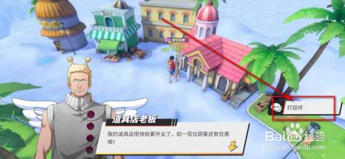前去天使岛贸易街与“道具店老板”对话,点击“打号召”。