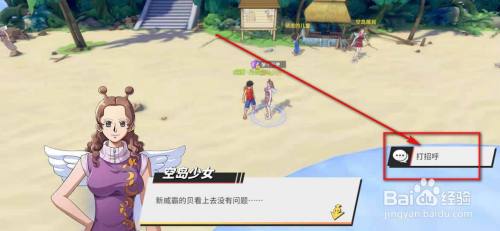 前去天使岛海滩与“空岛少女”对话,点击“打号召”。