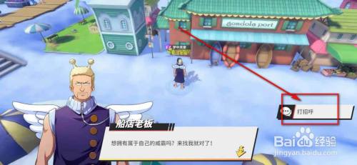 与天使岛船舶街的“船店老板”对话,点击“打号召”。