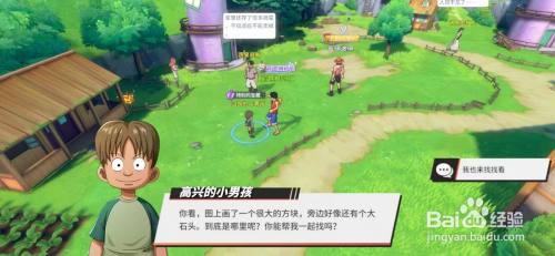 小男孩奉告图上画了一个很大的方块,旁边仿佛还有个大石头。到底是哪里呢?您能帮我一路找吗?