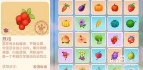 荔枝:荔枝种子售价17摩尔豆,莳植出的荔枝出售给花婶售价是35摩尔豆,采摘荔枝需要耗损17点爱心值。