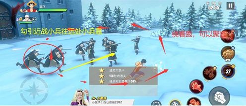 当仇敌处于一条线的环境下,利用【橡皮·机关枪】可以同时将一条线的仇敌都吸在前方,然后往一个角落位置走,这样怪就会被聚在角落。