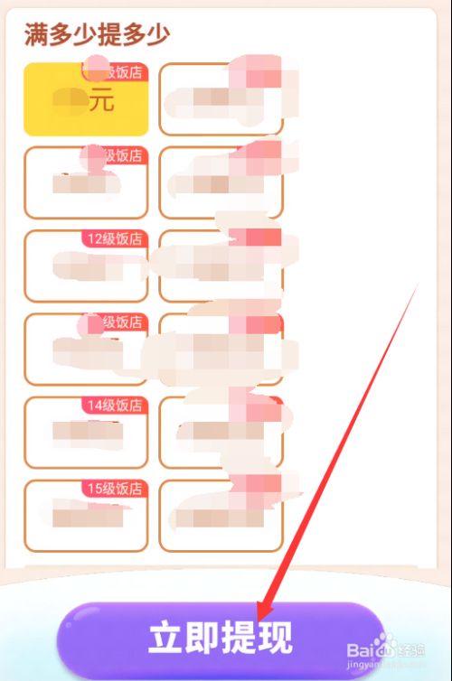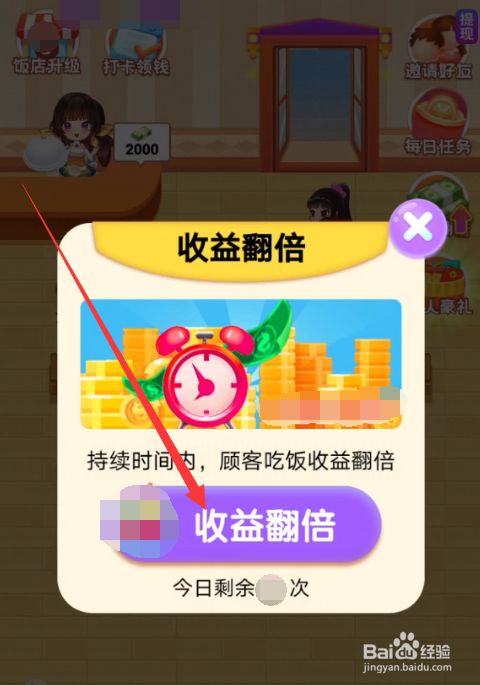 工具/原料苹果iPhone12PIOS14.3我的饭馆1.0方式/步骤1打开游戏,如图所示点击【欢迎】顾客。2如图所示顾客完当作用餐获得营业收益3如图所示点击【收益翻倍】快速进级4如图所示品级达到8级呈现提现礼包5如图所示点击【当即提现】END注重事项品级达到8级呈现提现礼包