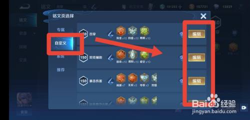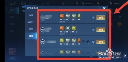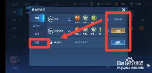 进入铭文选择页面后,可以利用专属铭文,也可以点击进入保举页面。
