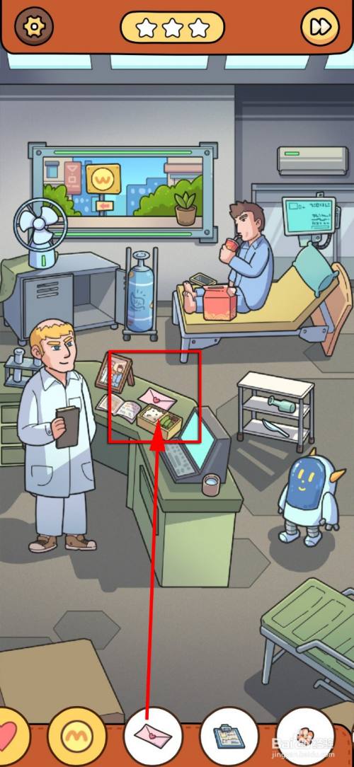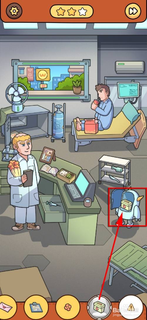把柜子里的金币给机械人,摇摆手机大夫身上也会失落下一枚金币,两枚金币都给机械人,就能获得急救箱。