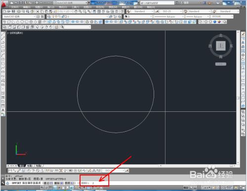 切换到俯视图,点击【圆东西】绘制出一个圆形图案后,点击【偏移东西】按图示对圆形图案进行标的目的内偏移;